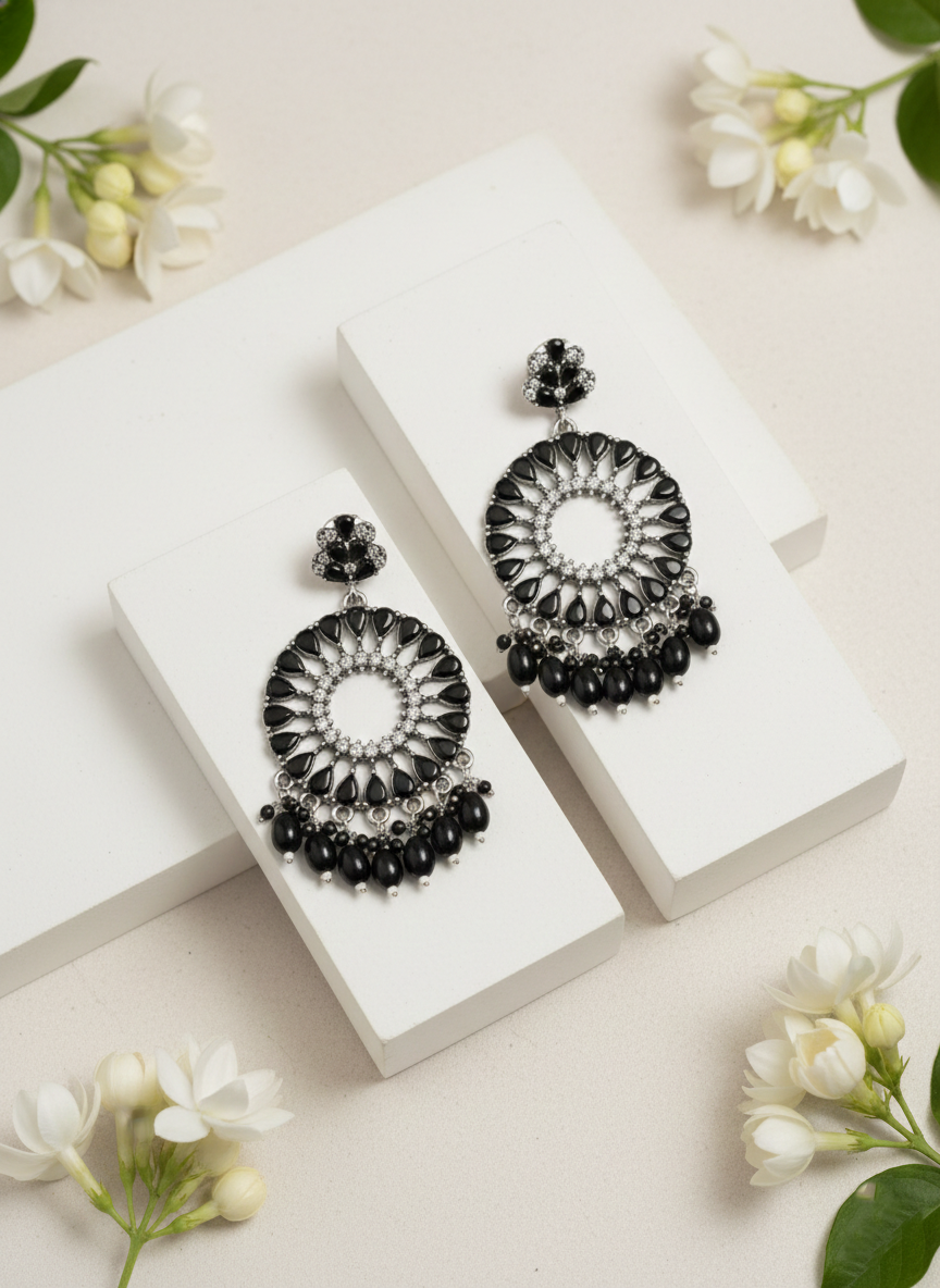 Elegant black and silver chandbalis designed to elevate festive and evening looks.